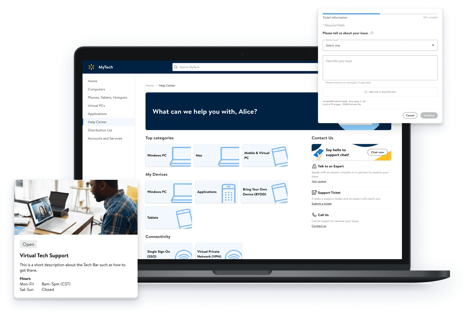 Led and contributed hands-on UX design to centralize enterprise tech support and reduce support costs, resulting in the #1 self-service feature.